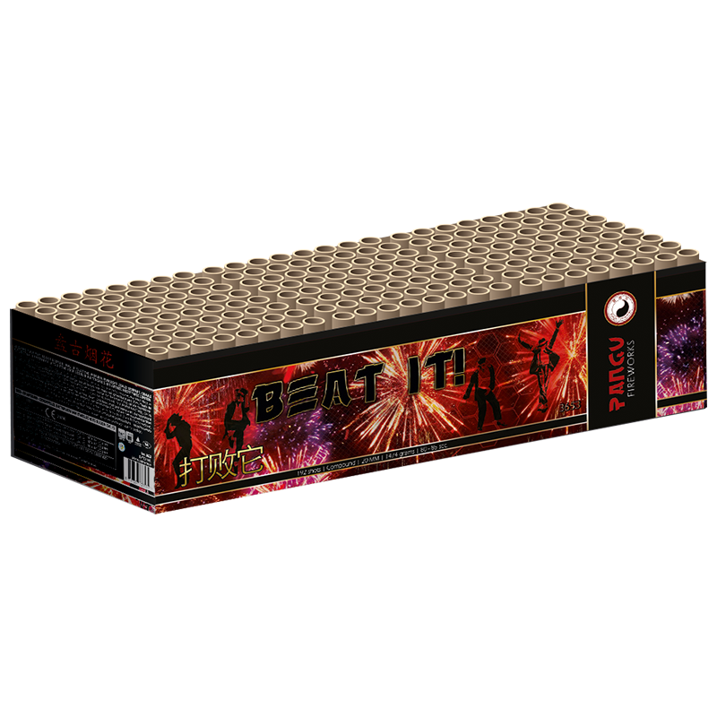 De Beat It van Pangu Fireworks daagt al uw buren uit tijdens de jaarwisseling. Met zijn 192 schoten uitgevoerd in 20mm kaliber zet deze compound een enorm feestje neer. Een divers scala aan siereffecten worden in hoog tempo gelanceerd. Hierdoor blijft uw Beat It imponeren tijdens zijn ruim 1,5 minuut durende spektakel, en daagt u de buren echt uit om met iets beters te komen!