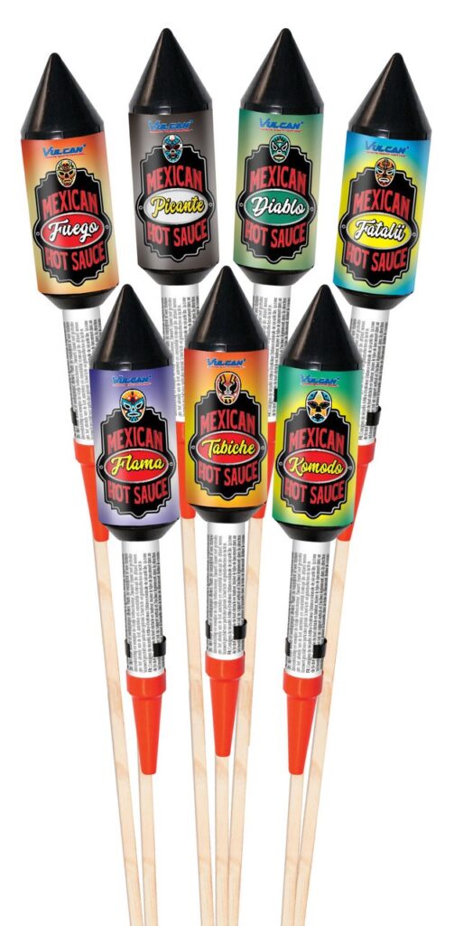 7- delig vuurpijlen assortiment met een bijzonder smaakvol en pittig design. Chili Con Bang Rocket assortment Goedkoop vuurwerk kopen bij Vuurwerkwinkel Heerenveen