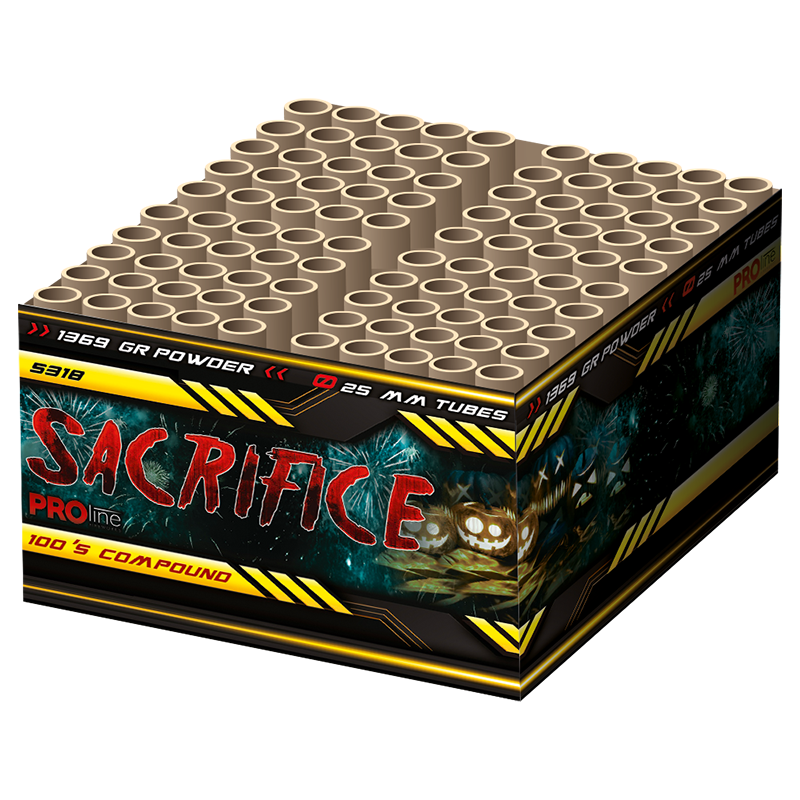 nHet afsteken van deze Sacrifice compound van Pro-line Fireworks is een van de beste offers voor de oudejaarsnacht. Deze 100 schots rambak bevat diverse felgekleurde parel-effecten, kopergouden palmen met oranje parel en witte ghost-effecten, dat alles in prachtig opbouwend salvo-tempo. Dit is echt een musthave uit de Pro-line compoundselectie.