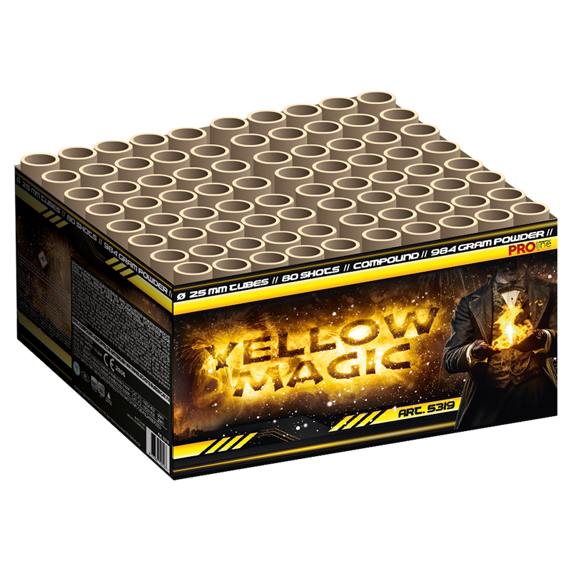 Yellow Magic 80 shots 25mm Goedkoop vuurwerk kopen bij Vuurwerkwinkel Heerenveen